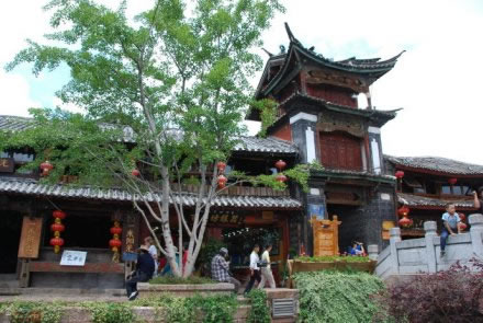 木府原為麗江世襲土司木氏的衙署,位于古城獅子山東麓,始建于元代(公元1271~1368年),1998年重建后改為古城博物院。木府占地46畝,府內(nèi)有大小房間共162間,中軸線長(zhǎng)369米,三清殿、玉音樓、光碧樓、護(hù)法殿、萬(wàn)卷樓、議事廳、忠義坊由西向東排列井然。其內(nèi)懸掛有歷代皇帝欽賜的匾額十一塊,反映了木氏家族的盛衰歷史。講述麗江木氏土司風(fēng)云故事的電視劇《木府風(fēng)云》就是在這里拍攝的。