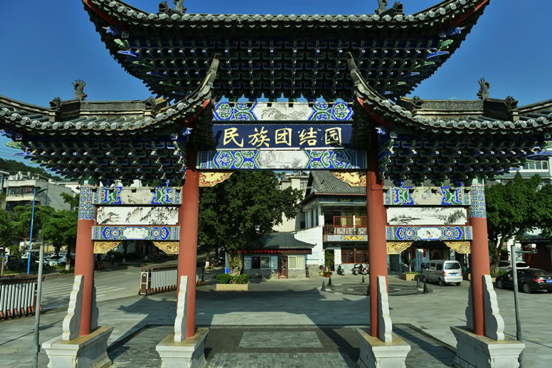 民族團結(jié)園占地面積4437平方米,建有牌坊大門、古式六角碑亭、仿古彩繪主大樓、佛雕等建筑,是一座集觀賞、參觀、教育于一體的園地。2003年,被省委、省人民政府列為云南省第二批社會主義教育基地、愛國主義教育基地;2006年5月,被國務院批準列為第六批全國重點文物保護單位;2006年8月被國家民委授予“全國民族團結(jié)進步教育基地”稱號。 園內(nèi)有“新中國民族團結(jié)第一碑”——民族團結(jié)誓詞碑,1951年元旦,普洱專區(qū)26種民族的代表和黨政軍領導剽牛、喝咒水盟誓,立下此碑,為滇南民族團結(jié)鑒證物。