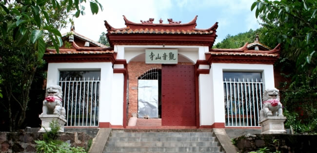 觀音山位于縣城東北約6公里處,古時這里曾建有三層殿堂,供奉觀音菩薩、如來佛像,是時游人如云,香火旺盛。惜殿堂在“文革”期間毀于一旦,1987年4月,成立修復普洱觀音勝景理事會,在大殿原址重建廟宇。寺院內(nèi)鳥語花香,寺外松林茂盛,殿后有山泉流水,半山坡松濤陣陣,環(huán)境異常清幽優(yōu)雅。吃一頓寺院素齋,健康自然,是難得的享受。