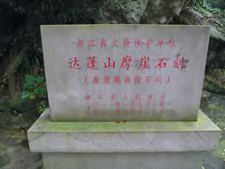 摩崖石刻是后人為緬懷徐福東渡這一歷史事件而保存下來(lái)的歷史古跡,大約刻于唐宋間,故而十分珍貴,具有極高的歷史研究?jī)r(jià)值。石刻面朝東南,高1.2米,寬3.5米,整幅畫面展現(xiàn)“人馬步金橋”、“鯉魚跳龍門”、“麟鳳呈祥瑞”等場(chǎng)面,表現(xiàn)了徐福率童男童女從達(dá)蓬山東渡出海的史實(shí),也是全國(guó)唯一幸存的反映徐福東渡的歷史古跡。清康熙庚子年僧人惠初游覽達(dá)蓬山時(shí),在其中挖了神龕,并刻有“靈臺(tái)自若”等字樣。