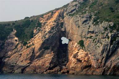 說起南麂列島的絕景,天然壁畫應是“首絕”,這又是大自然杰作。位于三盤尾南部東側峭崖處,是原杭州大學張友良教授首先發(fā)現。畫壁寬約40米,高30余米,氣勢恢宏,層次分明,被專家譽為“國寶”和東海奇觀。就在礁石錯落,白浪排空處,高矗著一幅石屏風,整個巖面宛然是一幅天然山水畫,其中一尾大龍蝦栩栩如生,十分逼真。歷來山水畫家?guī)煼ㄗ匀,又常贊美自然景物為“天開圖畫”。眼前,這天然壁畫給人帶來意外的美的享受。