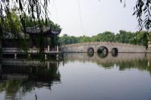 南潯文園位于南潯風景名勝區(qū),四周有河流,中間有湖泊,北面靠近江南水鄉(xiāng)一條街,又與小蓮莊、嘉業(yè)堂藏書樓等名勝靠近。南潯文園整體建筑分南北兩部分,由天橋相連,南園主要為江南園林,周圍建有兒童樂園、大型樹樁盆景園、名人詩廊等;北園以湖心文昌閣為中心,周圍布有名人詩廊、紅軍長征紀念館、吳壽谷藝術(shù)館、徐遲紀念館、明代石獅等景點。